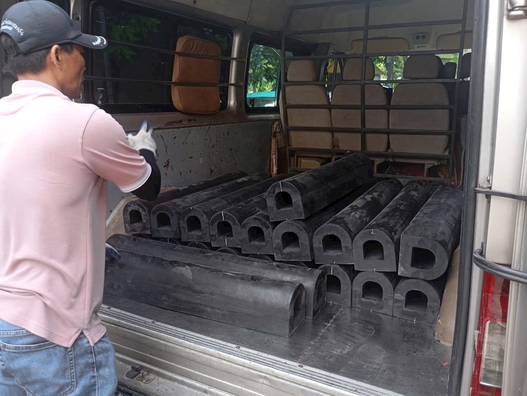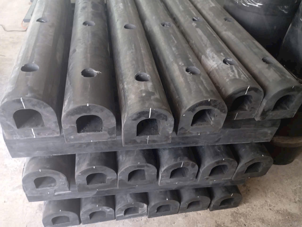 - Cao su chống va đập hình chữ D được làm từ sợi cao su tăng cường loại tốt nhất có chứa nylon và polyester, tất cả các kiểu dáng, mẫu mã đều đã được khoan trước, gắn những lỗ chìm để tiện cho việc sử dụng, và đã được khoan để có thể chứa được ½ blong neo.