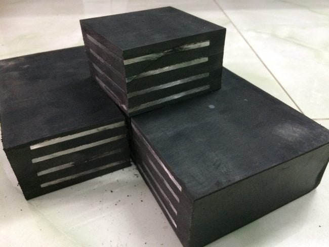Do chịu lực chủ yếu của gối cầu cao su là phương thẳng đứng, nên để tránh tình trạng bị biến dạng, bên trong gối cầu được thiết kế có tấm thép chịu lực liên kết chặt với cao su giúp tạo nên sự chắc chắn.